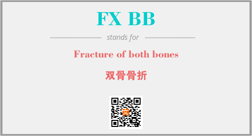 上述内容是“Fracture of both bones”作为“FX BB”的缩写,解释为“双骨骨折”时的信息,以及英文缩略词FX BB所代表的英文单词,其对应的中文拼音、详细解释以及在英文中的流行度和相关分类、应用领域及应用示例等。