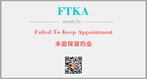 英文缩略词“FTKA”经常作为“Failed To Keep Appointment”的英文缩写来使用,中文表示:“未能保留约会”。本文将详细介绍英文缩写词FTKA所代表英文单词,其对应的中文拼音、详细解释以及在英语中的流行度。此外,还有关于缩略词FTKA的分类、应用领域及相关应用示例等。