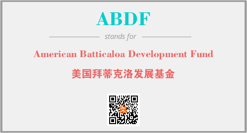 英文缩略词“ABDF”经常作为“American Batticaloa Development Fund”的英文缩写来使用,中文表示:“美国拜蒂克洛发展基金”。本文将详细介绍英文缩写词ABDF所代表英文单词,其对应的中文拼音、详细解释以及在英语中的流行度。此外,还有关于缩略词ABDF的分类、应用领域及相关应用示例等。