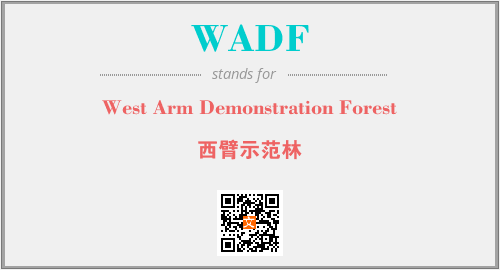 上述内容是“West Arm Demonstration Forest”作为“WADF”的缩写,解释为“西臂示范林”时的信息,以及英文缩略词WADF所代表的英文单词,其对应的中文拼音、详细解释以及在英文中的流行度和相关分类、应用领域及应用示例等。