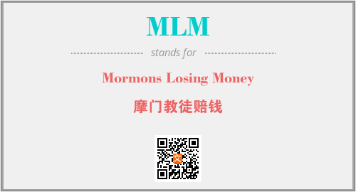 以上为Mormons Losing Money英文缩略词MLM的中文解释,以及该英文缩写在英语的流行度、分类和应用领域方面的信息。