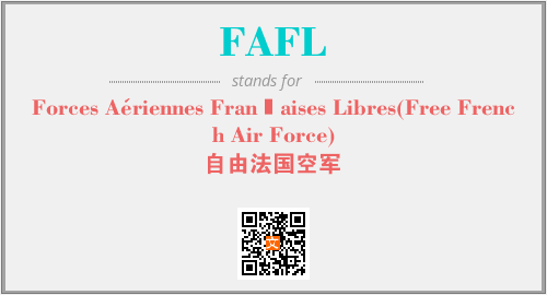 英文缩略词“FAFL”经常作为“Forces Aériennes Françaises Libres(Free French Air Force)”的英文缩写来使用,中文表示:“自由法国空军”。本文将详细介绍英文缩写词FAFL所代表英文单词,其对应的中文拼音、详细解释以及在英语中的流行度。此外,还有关于缩略词FAFL的分类、应用领域及相关应用示例等。