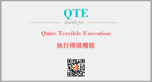 英文缩略词“QTE”经常作为“Quite Terrible Execution”的英文缩写来使用,中文表示:“执行得很糟糕”。本文将详细介绍英文缩写词QTE所代表英文单词,其对应的中文拼音、详细解释以及在英语中的流行度。此外,还有关于缩略词QTE的分类、应用领域及相关应用示例等。