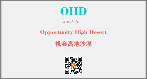 上述内容是“Opportunity High Desert”作为“OHD”的缩写,解释为“机会高地沙漠”时的信息,以及英文缩略词OHD所代表的英文单词,其对应的中文拼音、详细解释以及在英文中的流行度和相关分类、应用领域及应用示例等。