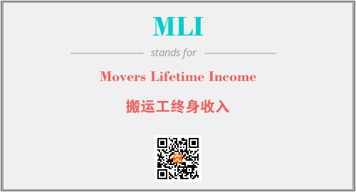 上述内容是“Movers Lifetime Income”作为“MLI”的缩写,解释为“搬运工终身收入”时的信息,以及英文缩略词MLI所代表的英文单词,其对应的中文拼音、详细解释以及在英文中的流行度和相关分类、应用领域及应用示例等。