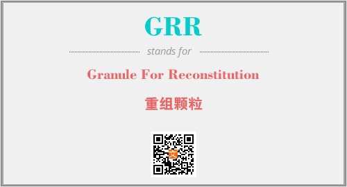 上述内容是“Granule For Reconstitution”作为“GRR”的缩写,解释为“重组颗粒”时的信息,以及英文缩略词GRR所代表的英文单词,其对应的中文拼音、详细解释以及在英文中的流行度和相关分类、应用领域及应用示例等。