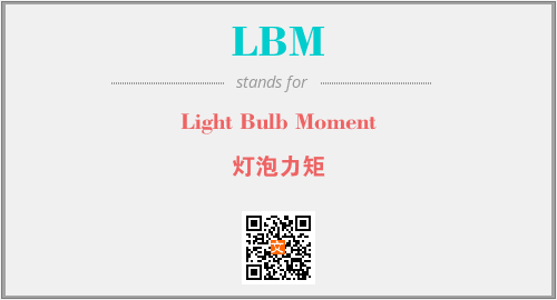 以上为Light Bulb Moment英文缩略词LBM的中文解释,以及该英文缩写在英语的流行度、分类和应用领域方面的信息。