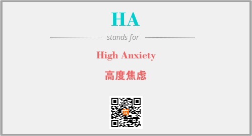 上述内容是“High Anxiety”作为“HA”的缩写,解释为“高度焦虑”时的信息,以及英文缩略词HA所代表的英文单词,其对应的中文拼音、详细解释以及在英文中的流行度和相关分类、应用领域及应用示例等。