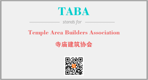 英文缩略词“TABA”经常作为“Temple Area Builders Association”的英文缩写来使用,中文表示:“寺庙建筑协会”。本文将详细介绍英文缩写词TABA所代表英文单词,其对应的中文拼音、详细解释以及在英语中的流行度。此外,还有关于缩略词TABA的分类、应用领域及相关应用示例等。