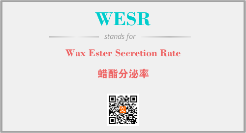 上述内容是“Wax Ester Secretion Rate”作为“WESR”的缩写,解释为“蜡酯分泌率”时的信息,以及英文缩略词WESR所代表的英文单词,其对应的中文拼音、详细解释以及在英文中的流行度和相关分类、应用领域及应用示例等。