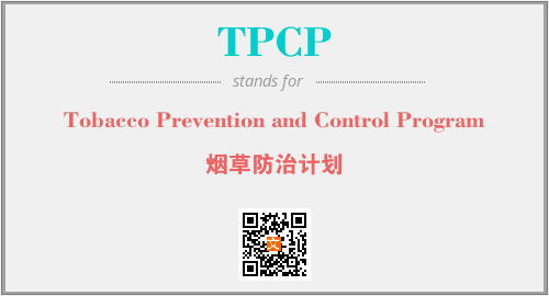 上述内容是“Tobacco Prevention and Control Program”作为“TPCP”的缩写,解释为“烟草防治计划”时的信息,以及英文缩略词TPCP所代表的英文单词,其对应的中文拼音、详细解释以及在英文中的流行度和相关分类、应用领域及应用示例等。