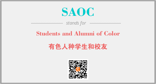 上述内容是“Students and Alumni of Color”作为“SAOC”的缩写,解释为“有色人种学生和校友”时的信息,以及英文缩略词SAOC所代表的英文单词,其对应的中文拼音、详细解释以及在英文中的流行度和相关分类、应用领域及应用示例等。