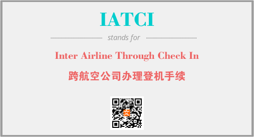 英文缩略词“IATCI”经常作为“Inter Airline Through Check In”的英文缩写来使用,中文表示:“跨航空公司办理登机手续”。本文将详细介绍英文缩写词IATCI所代表英文单词,其对应的中文拼音、详细解释以及在英语中的流行度。此外,还有关于缩略词IATCI的分类、应用领域及相关应用示例等。