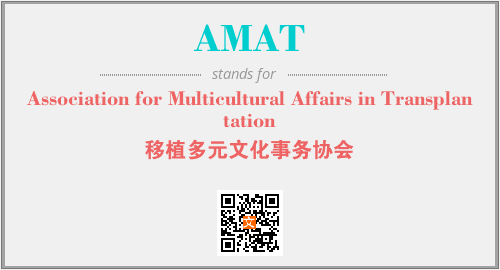 上述内容是“Association for Multicultural Affairs in Transplantation”作为“AMAT”的缩写,解释为“移植多元文化事务协会”时的信息,以及英文缩略词AMAT所代表的英文单词,其对应的中文拼音、详细解释以及在英文中的流行度和相关分类、应用领域及应用示例等。