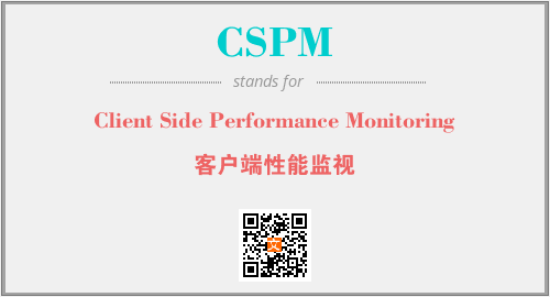 英文缩略词“CSPM”经常作为“Client Side Performance Monitoring”的英文缩写来使用,中文表示:“客户端性能监视”。本文将详细介绍英文缩写词CSPM所代表英文单词,其对应的中文拼音、详细解释以及在英语中的流行度。此外,还有关于缩略词CSPM的分类、应用领域及相关应用示例等。