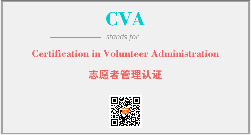 上述内容是“Certification in Volunteer Administration”作为“CVA”的缩写,解释为“志愿者管理认证”时的信息,以及英文缩略词CVA所代表的英文单词,其对应的中文拼音、详细解释以及在英文中的流行度和相关分类、应用领域及应用示例等。