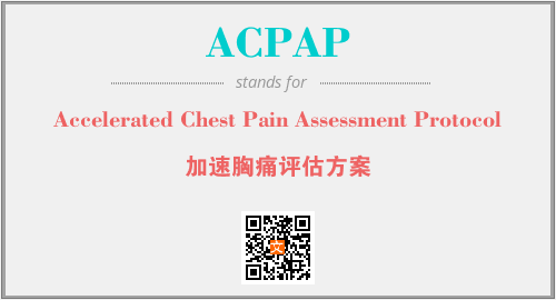 英文缩略词“ACPAP”经常作为“Accelerated Chest Pain Assessment Protocol”的英文缩写来使用,中文表示:“加速胸痛评估方案”。本文将详细介绍英文缩写词ACPAP所代表英文单词,其对应的中文拼音、详细解释以及在英语中的流行度。此外,还有关于缩略词ACPAP的分类、应用领域及相关应用示例等。