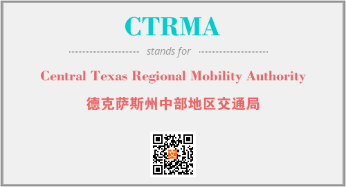 上述内容是“Central Texas Regional Mobility Authority”作为“CTRMA”的缩写,解释为“德克萨斯州中部地区交通局”时的信息,以及英文缩略词CTRMA所代表的英文单词,其对应的中文拼音、详细解释以及在英文中的流行度和相关分类、应用领域及应用示例等。