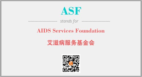 英文缩略词“ASF”经常作为“AIDS Services Foundation”的英文缩写来使用,中文表示:“艾滋病服务基金会”。本文将详细介绍英文缩写词ASF所代表英文单词,其对应的中文拼音、详细解释以及在英语中的流行度。此外,还有关于缩略词ASF的分类、应用领域及相关应用示例等。