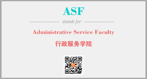 英文缩略词“ASF”经常作为“Administrative Service Faculty”的英文缩写来使用,中文表示:“行政服务学院”。本文将详细介绍英文缩写词ASF所代表英文单词,其对应的中文拼音、详细解释以及在英语中的流行度。此外,还有关于缩略词ASF的分类、应用领域及相关应用示例等。