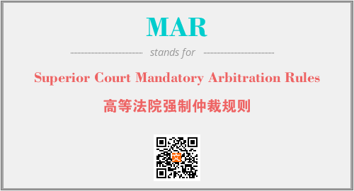 以上为Superior Court Mandatory Arbitration Rules英文缩略词MAR的中文解释,以及该英文缩写在英语的流行度、分类和应用领域方面的信息。