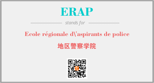 英文缩略词“ERAP”经常作为“Ecole régionale d\'aspirants de police”的英文缩写来使用,中文表示:“地区警察学院”。本文将详细介绍英文缩写词ERAP所代表英文单词,其对应的中文拼音、详细解释以及在英语中的流行度。此外,还有关于缩略词ERAP的分类、应用领域及相关应用示例等。