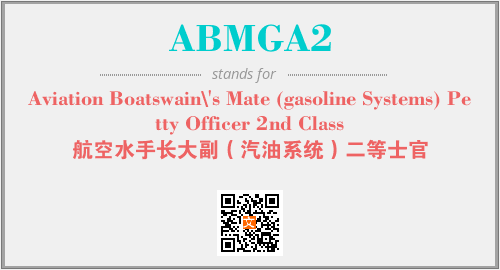 上述内容是“Aviation Boatswain\'s Mate (gasoline Systems) Petty Officer 2nd Class”作为“ABMGA2”的缩写,解释为“航空水手长大副(汽油系统)二等士官”时的信息,以及英文缩略词ABMGA2所代表的英文单词,其对应的中文拼音、详细解释以及在英文中的流行度和相关分类、应用领域及应用示例等。