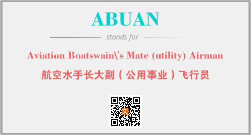 英文缩略词“ABUAN”经常作为“Aviation Boatswain\'s Mate (utility) Airman”的英文缩写来使用,中文表示:“航空水手长大副(公用事业)飞行员”。本文将详细介绍英文缩写词ABUAN所代表英文单词,其对应的中文拼音、详细解释以及在英语中的流行度。此外,还有关于缩略词ABUAN的分类、应用领域及相关应用示例等。