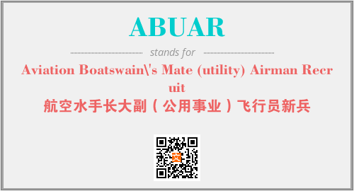 上述内容是“Aviation Boatswain\'s Mate (utility) Airman Recruit”作为“ABUAR”的缩写,解释为“航空水手长大副(公用事业)飞行员新兵”时的信息,以及英文缩略词ABUAR所代表的英文单词,其对应的中文拼音、详细解释以及在英文中的流行度和相关分类、应用领域及应用示例等。