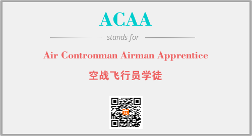 英文缩略词“ACAA”经常作为“Air Contronman Airman Apprentice”的英文缩写来使用,中文表示:“空战飞行员学徒”。本文将详细介绍英文缩写词ACAA所代表英文单词,其对应的中文拼音、详细解释以及在英语中的流行度。此外,还有关于缩略词ACAA的分类、应用领域及相关应用示例等。