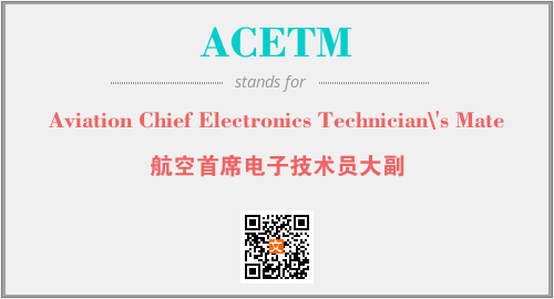 以上为Aviation Chief Electronics Technician\'s Mate英文缩略词ACETM的中文解释,以及该英文缩写在英语的流行度、分类和应用领域方面的信息。