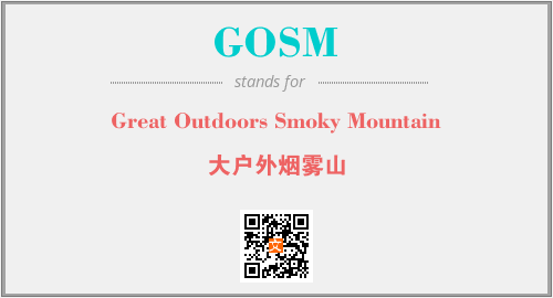 英文缩略词“GOSM”经常作为“Great Outdoors Smoky Mountain”的英文缩写来使用,中文表示:“大户外烟雾山”。本文将详细介绍英文缩写词GOSM所代表英文单词,其对应的中文拼音、详细解释以及在英语中的流行度。此外,还有关于缩略词GOSM的分类、应用领域及相关应用示例等。