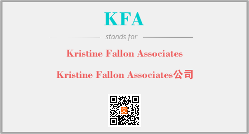 上述内容是“Kristine Fallon Associates”作为“KFA”的缩写,解释为“Kristine Fallon Associates公司”时的信息,以及英文缩略词KFA所代表的英文单词,其对应的中文拼音、详细解释以及在英文中的流行度和相关分类、应用领域及应用示例等。
