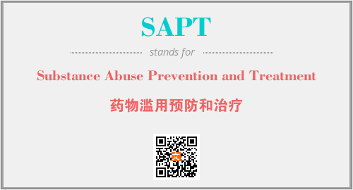 英文缩略词“SAPT”经常作为“Substance Abuse Prevention and Treatment”的英文缩写来使用,中文表示:“药物滥用预防和治疗”。本文将详细介绍英文缩写词SAPT所代表英文单词,其对应的中文拼音、详细解释以及在英语中的流行度。此外,还有关于缩略词SAPT的分类、应用领域及相关应用示例等。