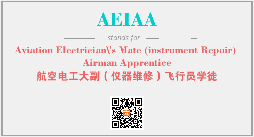 上述内容是“Aviation Electrician\'s Mate (instrument Repair) Airman Apprentice”作为“AEIAA”的缩写,解释为“航空电工大副(仪器维修)飞行员学徒”时的信息,以及英文缩略词AEIAA所代表的英文单词,其对应的中文拼音、详细解释以及在英文中的流行度和相关分类、应用领域及应用示例等。