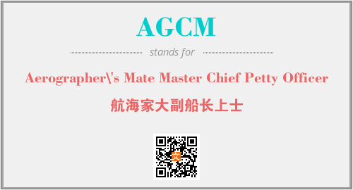 英文缩略词“AGCM”经常作为“Aerographer\'s Mate Master Chief Petty Officer”的英文缩写来使用,中文表示:“航海家大副船长上士”。本文将详细介绍英文缩写词AGCM所代表英文单词,其对应的中文拼音、详细解释以及在英语中的流行度。此外,还有关于缩略词AGCM的分类、应用领域及相关应用示例等。