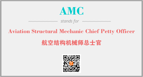 英文缩略词“AMC”经常作为“Aviation Structural Mechanic Chief Petty Officer”的英文缩写来使用,中文表示:“航空结构机械师总士官”。本文将详细介绍英文缩写词AMC所代表英文单词,其对应的中文拼音、详细解释以及在英语中的流行度。此外,还有关于缩略词AMC的分类、应用领域及相关应用示例等。