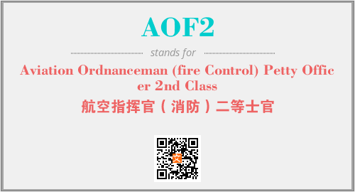 上述内容是“Aviation Ordnanceman (fire Control) Petty Officer 2nd Class”作为“AOF2”的缩写,解释为“航空指挥官(消防)二等士官”时的信息,以及英文缩略词AOF2所代表的英文单词,其对应的中文拼音、详细解释以及在英文中的流行度和相关分类、应用领域及应用示例等。