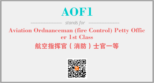 上述内容是“Aviation Ordnanceman (fire Control) Petty Officer 1st Class”作为“AOF1”的缩写,解释为“航空指挥官(消防)士官一等”时的信息,以及英文缩略词AOF1所代表的英文单词,其对应的中文拼音、详细解释以及在英文中的流行度和相关分类、应用领域及应用示例等。