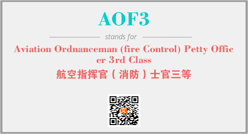 上述内容是“Aviation Ordnanceman (fire Control) Petty Officer 3rd Class”作为“AOF3”的缩写,解释为“航空指挥官(消防)士官三等”时的信息,以及英文缩略词AOF3所代表的英文单词,其对应的中文拼音、详细解释以及在英文中的流行度和相关分类、应用领域及应用示例等。