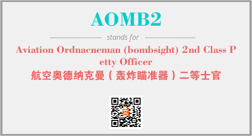 英文缩略词“AOMB2”经常作为“Aviation Ordnacneman (bombsight) 2nd Class Petty Officer”的英文缩写来使用,中文表示:“航空奥德纳克曼(轰炸瞄准器)二等士官”。本文将详细介绍英文缩写词AOMB2所代表英文单词,其对应的中文拼音、详细解释以及在英语中的流行度。此外,还有关于缩略词AOMB2的分类、应用领域及相关应用示例等。