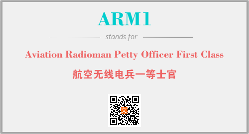 英文缩略词“ARM1”经常作为“Aviation Radioman Petty Officer First Class”的英文缩写来使用,中文表示:“航空无线电兵一等士官”。本文将详细介绍英文缩写词ARM1所代表英文单词,其对应的中文拼音、详细解释以及在英语中的流行度。此外,还有关于缩略词ARM1的分类、应用领域及相关应用示例等。