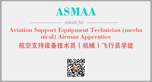 上述内容是“Aviation Support Equipment Technician (mechanical) Airman Apprentice”作为“ASMAA”的缩写,解释为“航空支持设备技术员(机械)飞行员学徒”时的信息,以及英文缩略词ASMAA所代表的英文单词,其对应的中文拼音、详细解释以及在英文中的流行度和相关分类、应用领域及应用示例等。