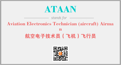英文缩略词“ATAAN”经常作为“Aviation Electronics Technician (aircraft) Airman”的英文缩写来使用,中文表示:“航空电子技术员(飞机)飞行员”。本文将详细介绍英文缩写词ATAAN所代表英文单词,其对应的中文拼音、详细解释以及在英语中的流行度。此外,还有关于缩略词ATAAN的分类、应用领域及相关应用示例等。