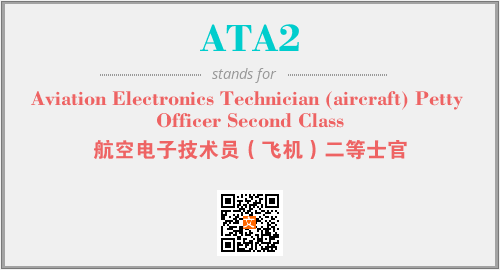 上述内容是“Aviation Electronics Technician (aircraft) Petty Officer Second Class”作为“ATA2”的缩写,解释为“航空电子技术员(飞机)二等士官”时的信息,以及英文缩略词ATA2所代表的英文单词,其对应的中文拼音、详细解释以及在英文中的流行度和相关分类、应用领域及应用示例等。