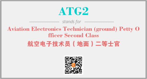 上述内容是“Aviation Electronics Technician (ground) Petty Officer Second Class”作为“ATG2”的缩写,解释为“航空电子技术员(地面)二等士官”时的信息,以及英文缩略词ATG2所代表的英文单词,其对应的中文拼音、详细解释以及在英文中的流行度和相关分类、应用领域及应用示例等。