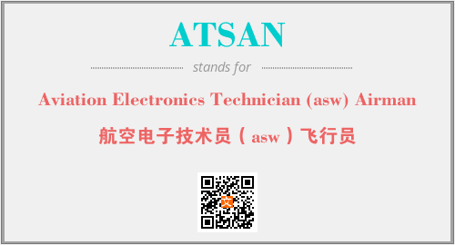 英文缩略词“ATSAN”经常作为“Aviation Electronics Technician (asw) Airman”的英文缩写来使用,中文表示:“航空电子技术员(asw)飞行员”。本文将详细介绍英文缩写词ATSAN所代表英文单词,其对应的中文拼音、详细解释以及在英语中的流行度。此外,还有关于缩略词ATSAN的分类、应用领域及相关应用示例等。