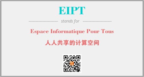 上述内容是“Espace Informatique Pour Tous”作为“EIPT”的缩写,解释为“人人共享的计算空间”时的信息,以及英文缩略词EIPT所代表的英文单词,其对应的中文拼音、详细解释以及在英文中的流行度和相关分类、应用领域及应用示例等。