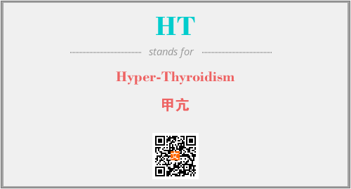 上述内容是“Hyper-Thyroidism”作为“HT”的缩写,解释为“甲亢”时的信息,以及英文缩略词HT所代表的英文单词,其对应的中文拼音、详细解释以及在英文中的流行度和相关分类、应用领域及应用示例等。
