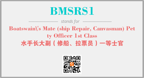 英文缩略词“BMSRS1”经常作为“Boatswain\'s Mate (ship Repair, Canvasman) Petty Officer 1st Class”的英文缩写来使用,中文表示:“水手长大副(修船、拉票员)一等士官”。本文将详细介绍英文缩写词BMSRS1所代表英文单词,其对应的中文拼音、详细解释以及在英语中的流行度。此外,还有关于缩略词BMSRS1的分类、应用领域及相关应用示例等。